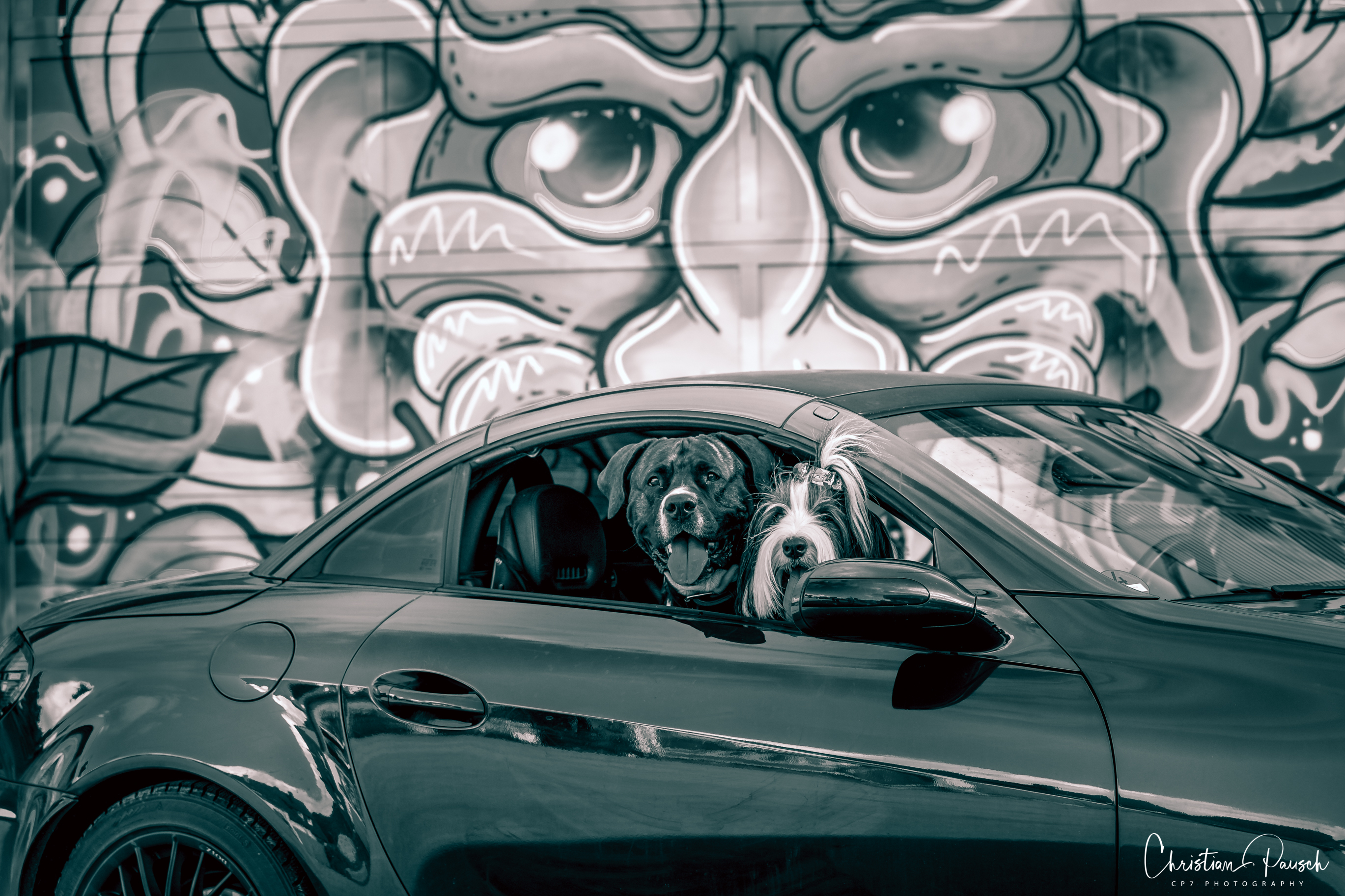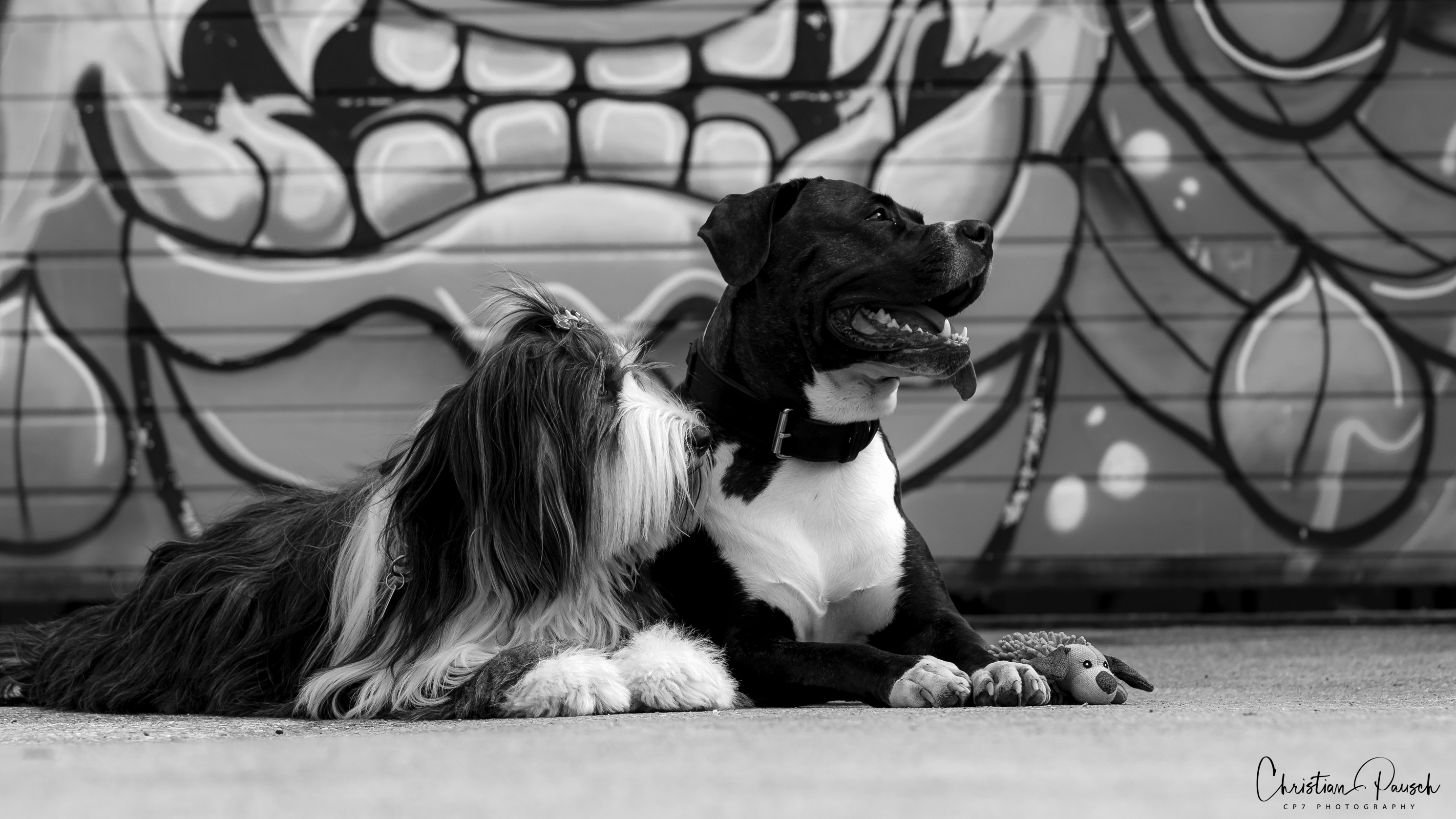 Am Donnerstag Nachmittag durfte ich Sandra und Ihre Schwester Gina begrüßen. Mit im Schlepptau waren Ihre Hunde Scada & Kayne. Scada ist ein Bearded Collie und Ihr Freund ein American Bulldog. Die beiden waren wirklich zuckersüß und hatten, so wie ich, teuflisch Spaß am Shooting. Besonders meine Glatze hatte es Kayne angetan. Nach jedem Foto in der Schildkrötenstellung bedankte er sich mit einem Schlabber über meine hohe Stirn.