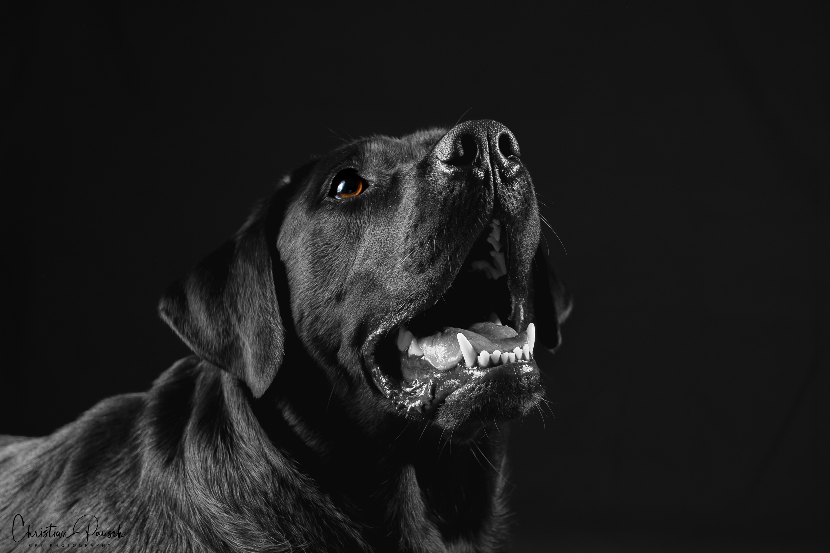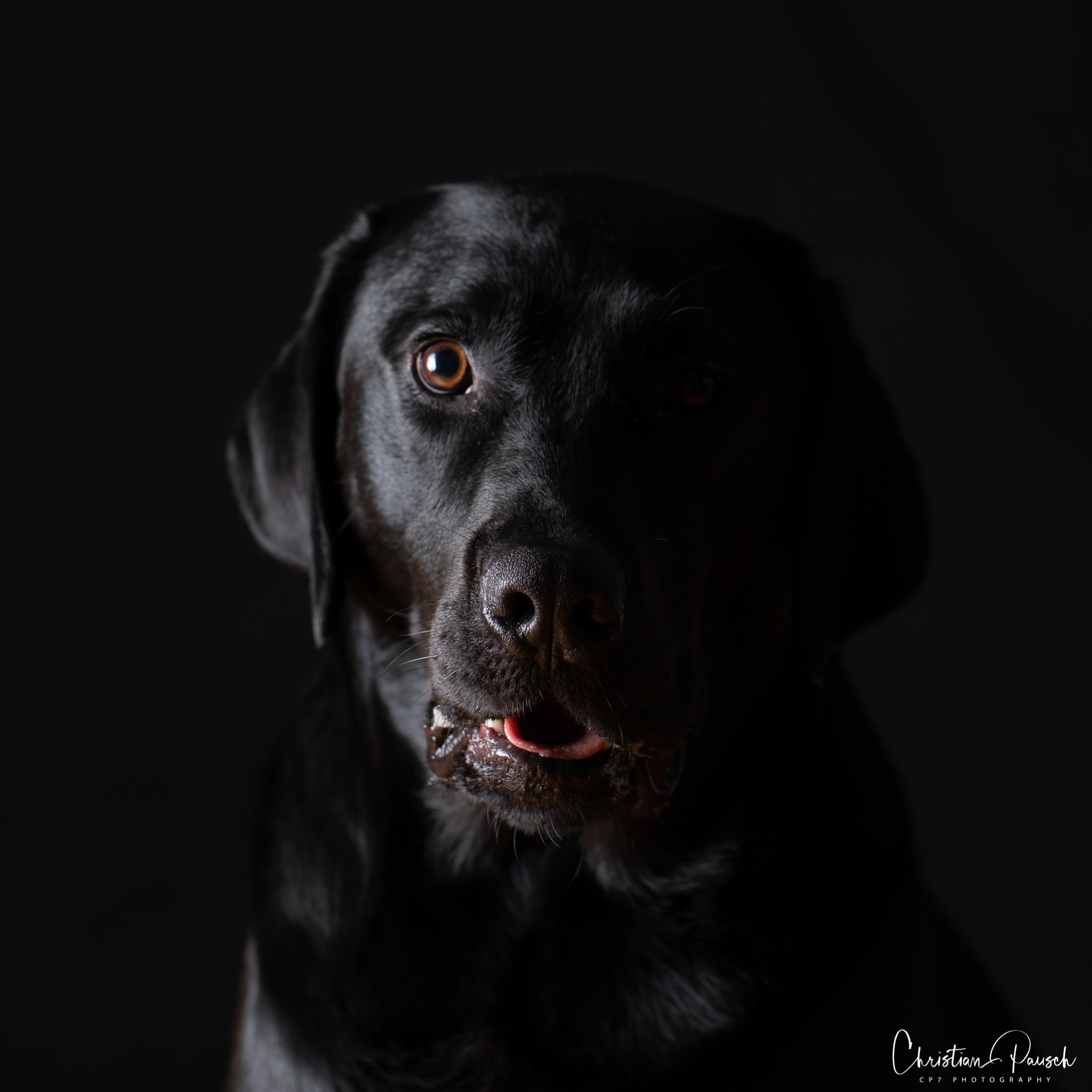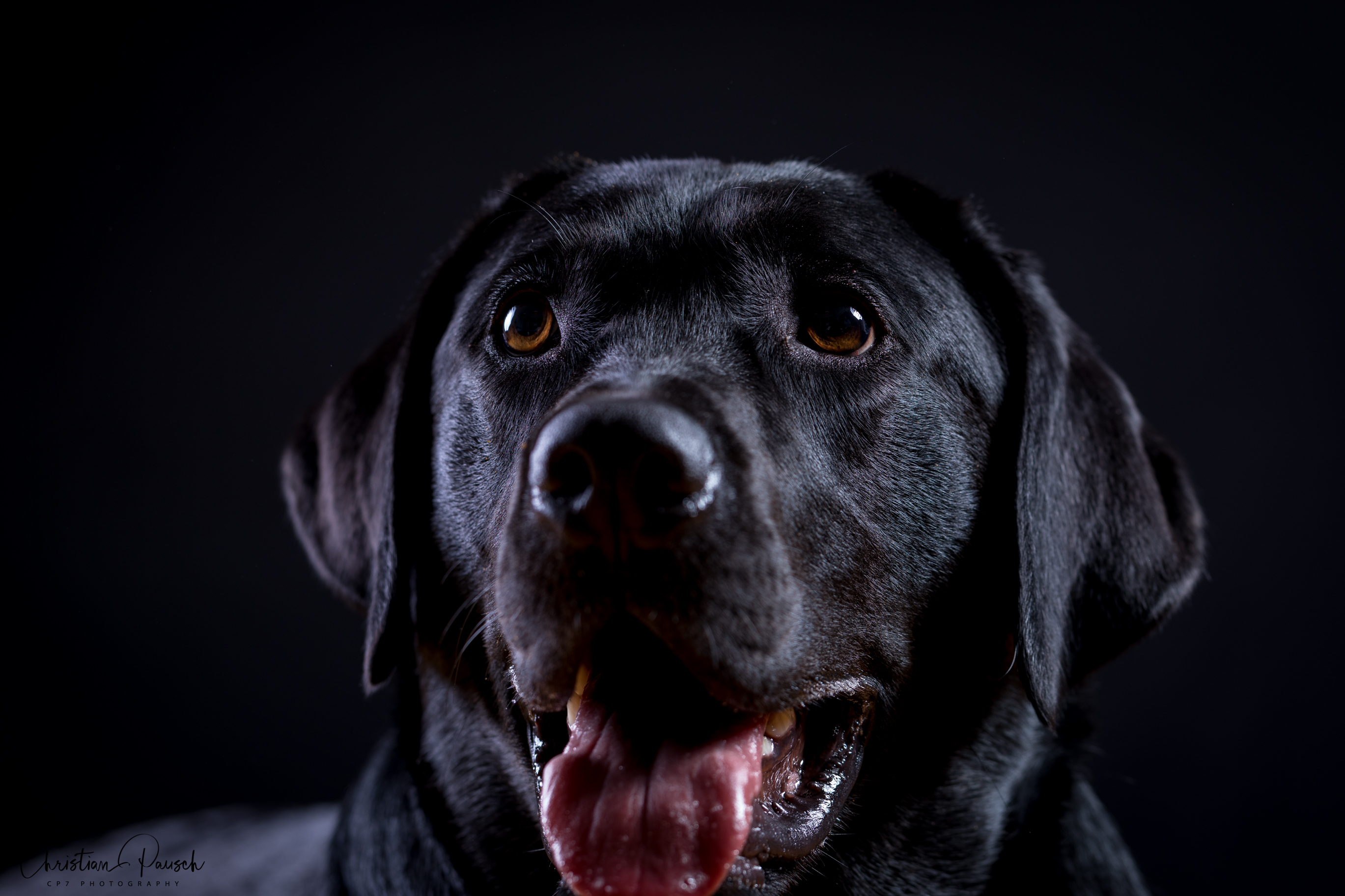 Am Freitag war Oreo, ein schwarzer Labrador, zu Gast. Jeder der schon einmal einen schwarzen Hund fotografiert hat, weiß um die Schwierigkeit des richtigen Lichts. Und wenn dann auch noch der Hintergrund schwarz ist…..