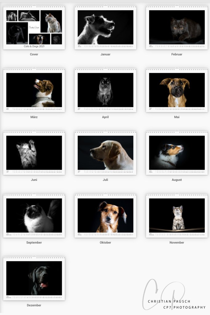 Endlich ist es soweit. Nach 12 tollen Fotoshootings, vielen neuen Bekanntschaften und einigen kurzweiligen Stunden der Nachbearbeitung sind die ersten Exemplare des Cats & Dogs Kalender bei mir eingetroffen. Ich muss wirklich sagen: WOW … Der Kalender ist, in meinen Augen, wirklich wunderschön geworden. Jeden Monat wird er mich immer wieder erneut an die tollen Bekanntschaften und Ihren Lieblingen erinnern und an die tolle Zeit, die wir während der Shootings miteinander hatten. Gerade in der jetzigen Zeit zaubert es mir jedes Mal ein Lächeln ins Gesicht und lässt mich die schwere Zeit vergessen.